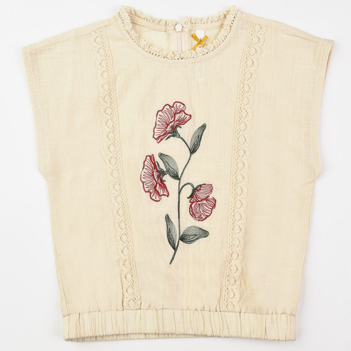 גיהוץ בחום נמוך, אין לגהץ הדפסים ורקמות.
