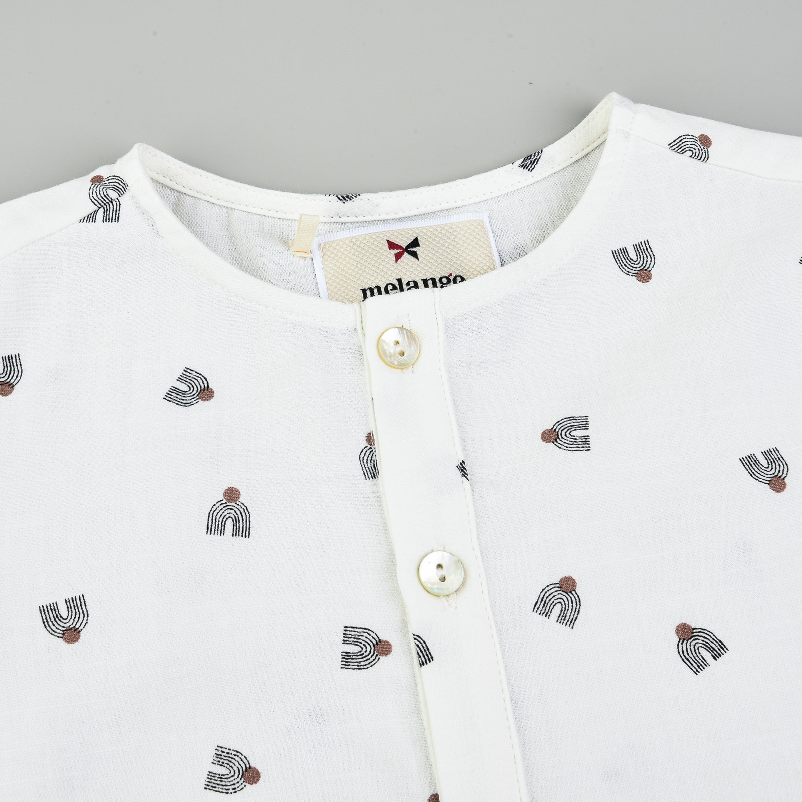 גיהוץ בחום נמוך, אין לגהץ הדפסים ורקמות.