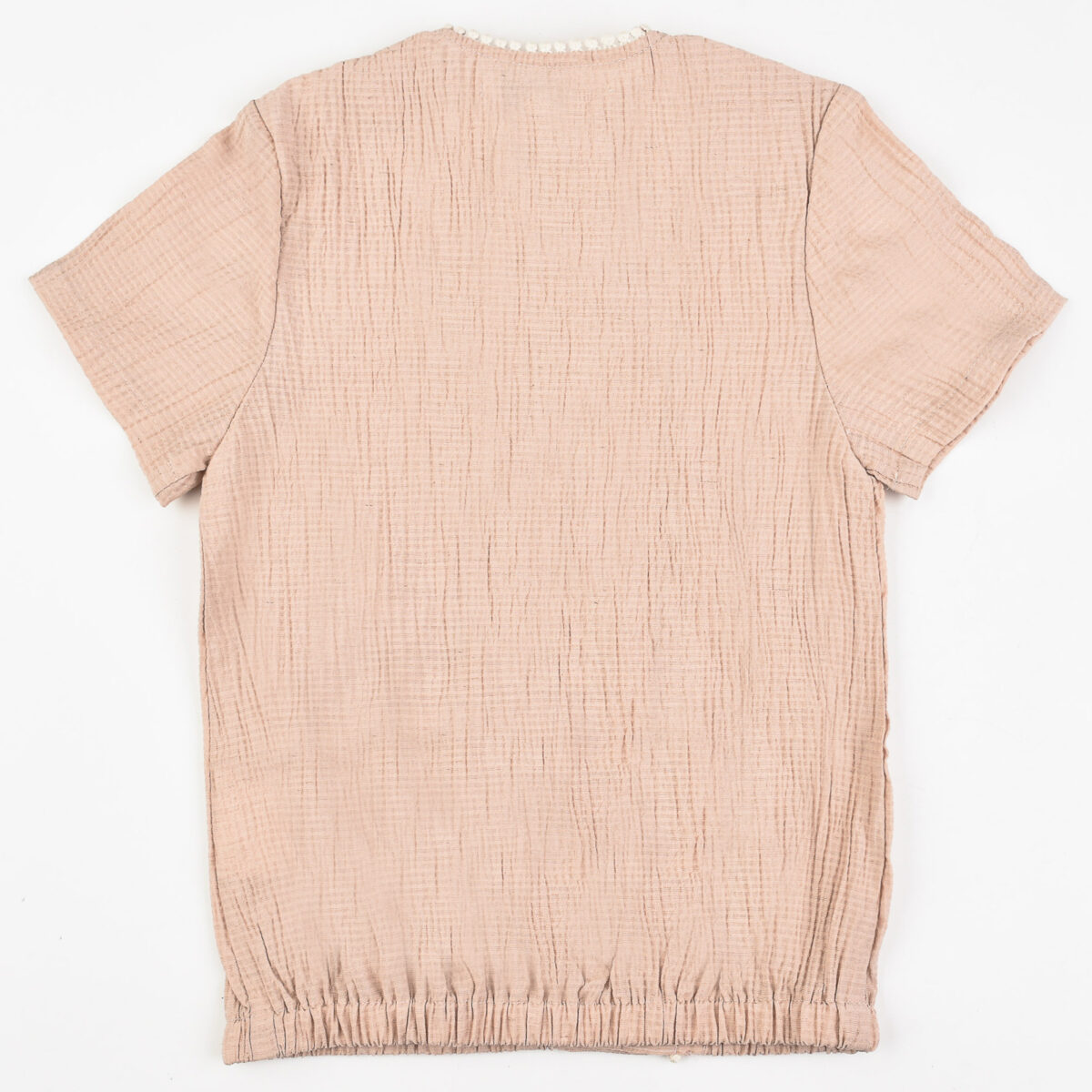 גיהוץ בחום נמוך, אין לגהץ הדפסים ורקמות.