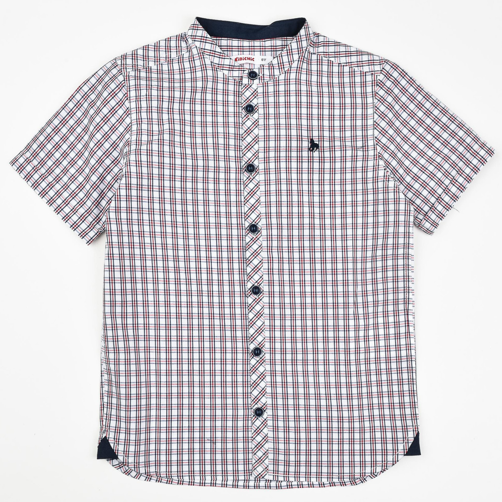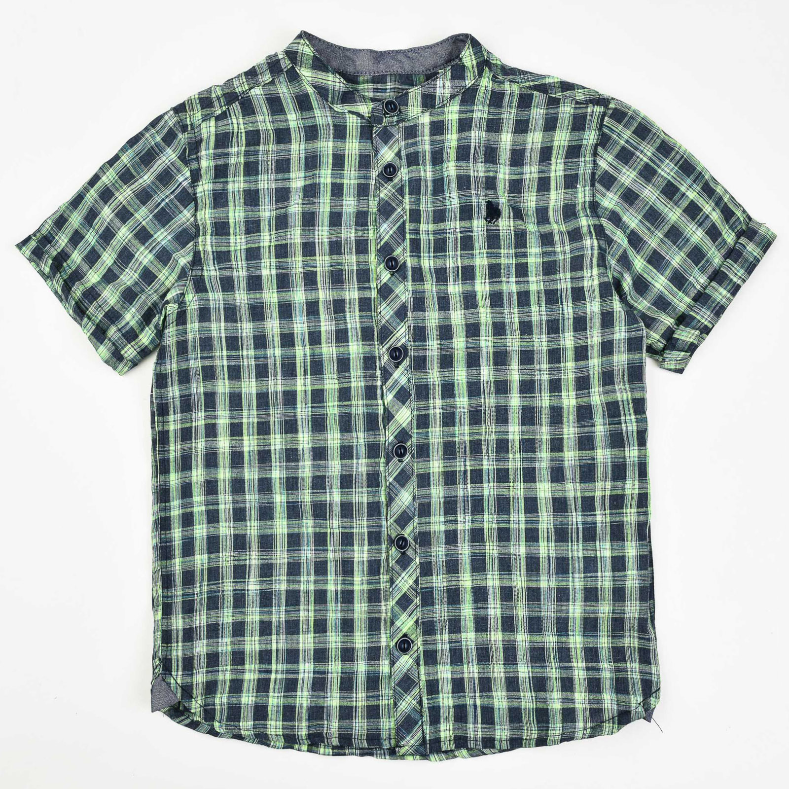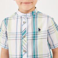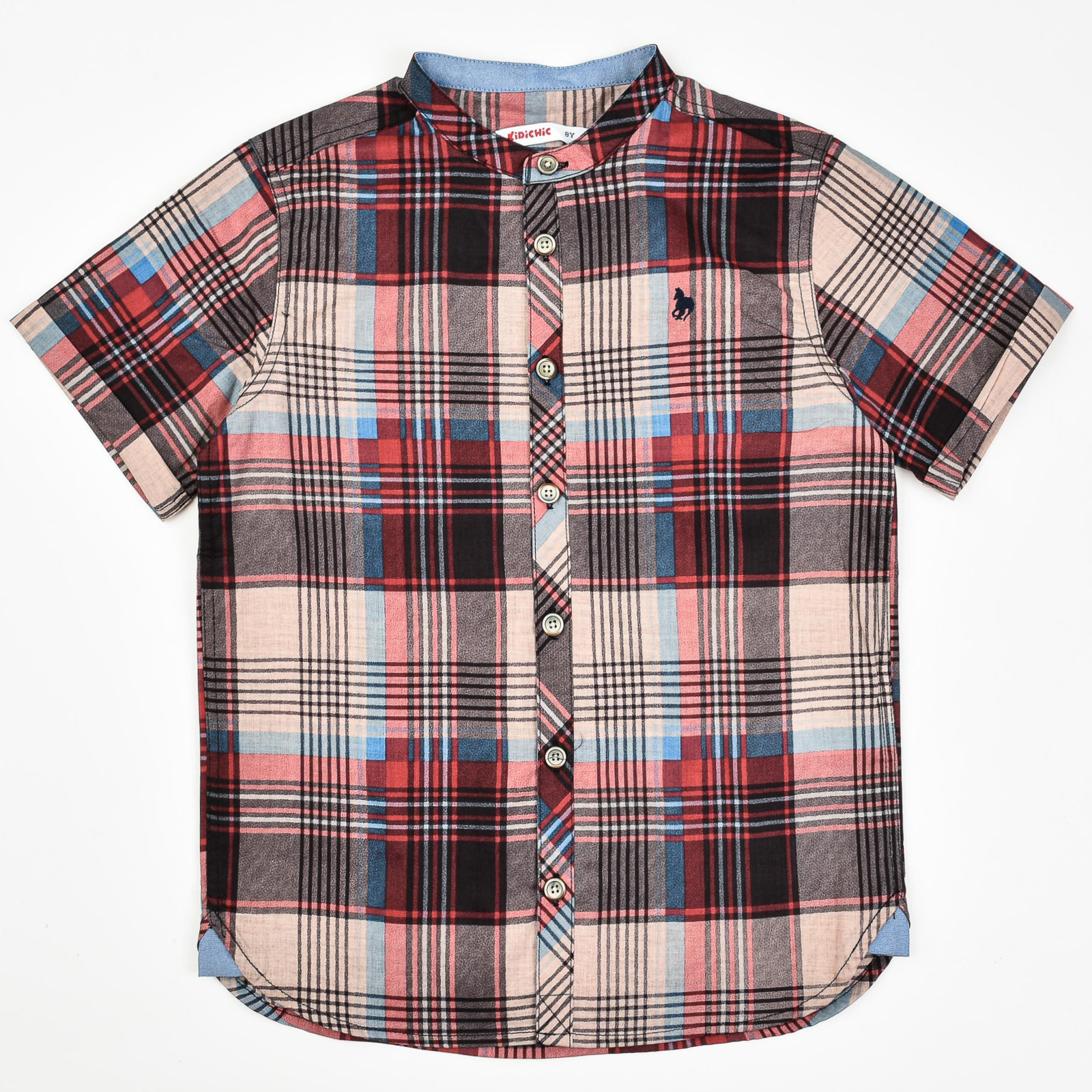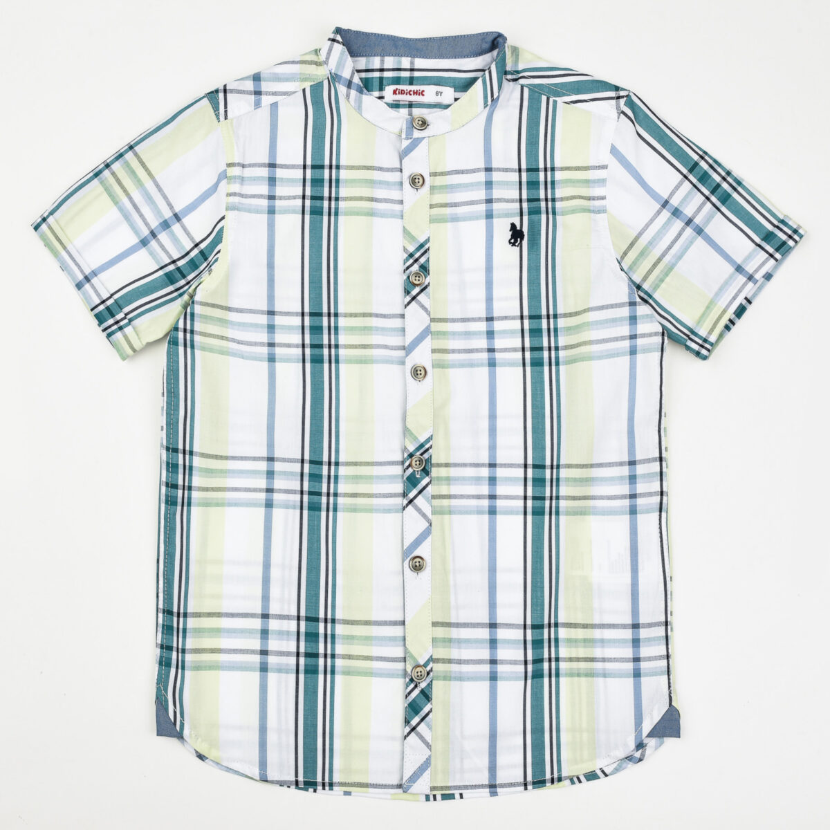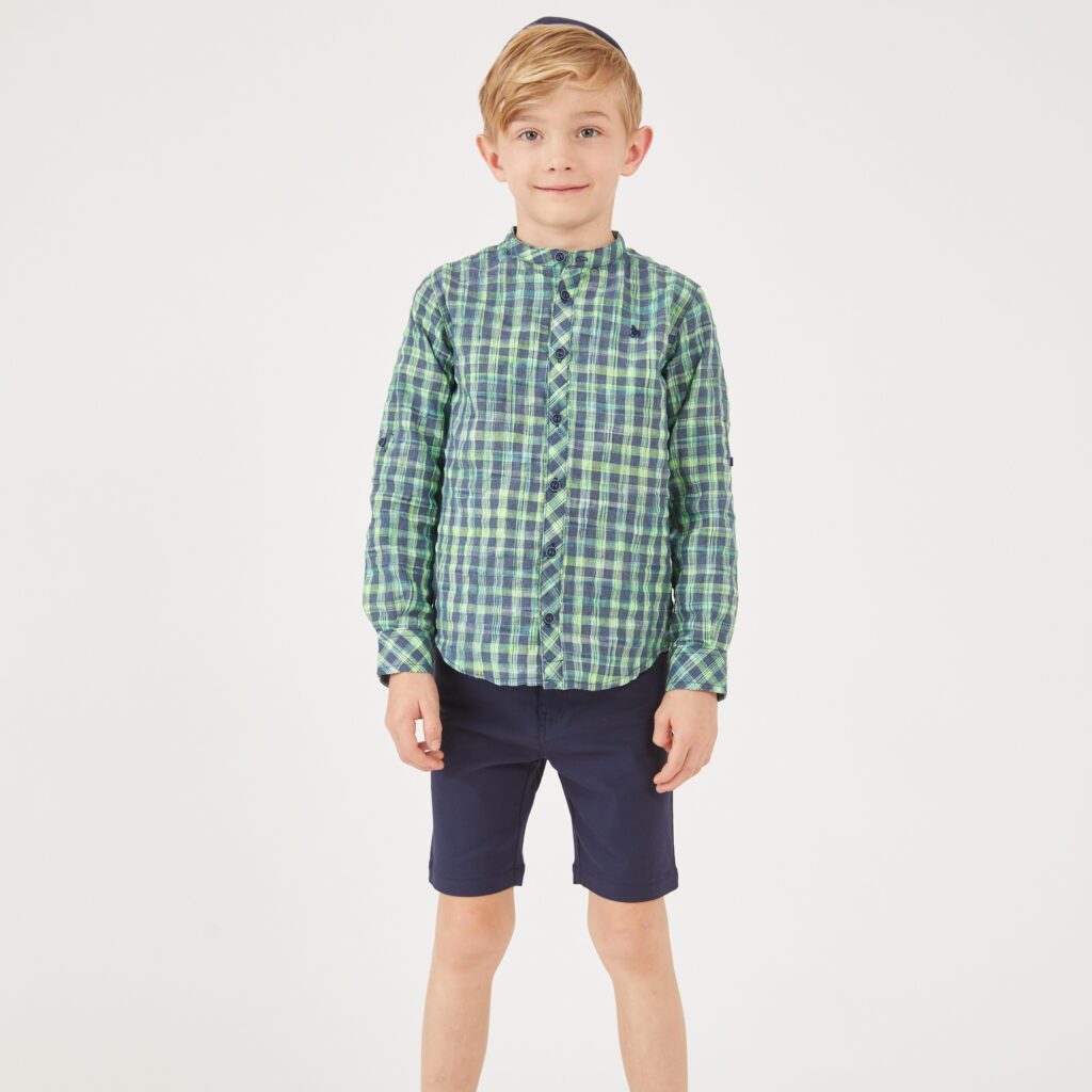 חולצת משבצות צווארון סיני קצר