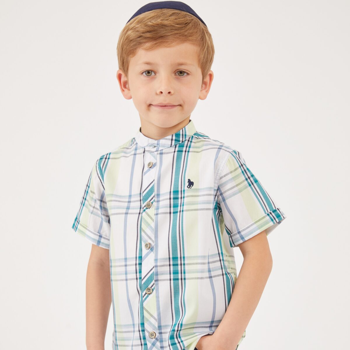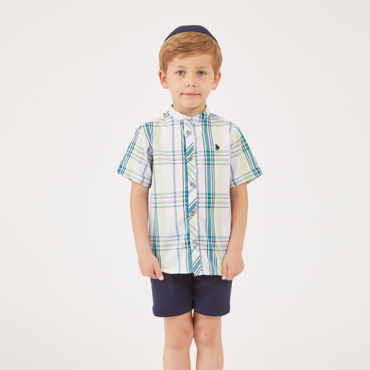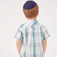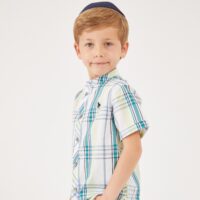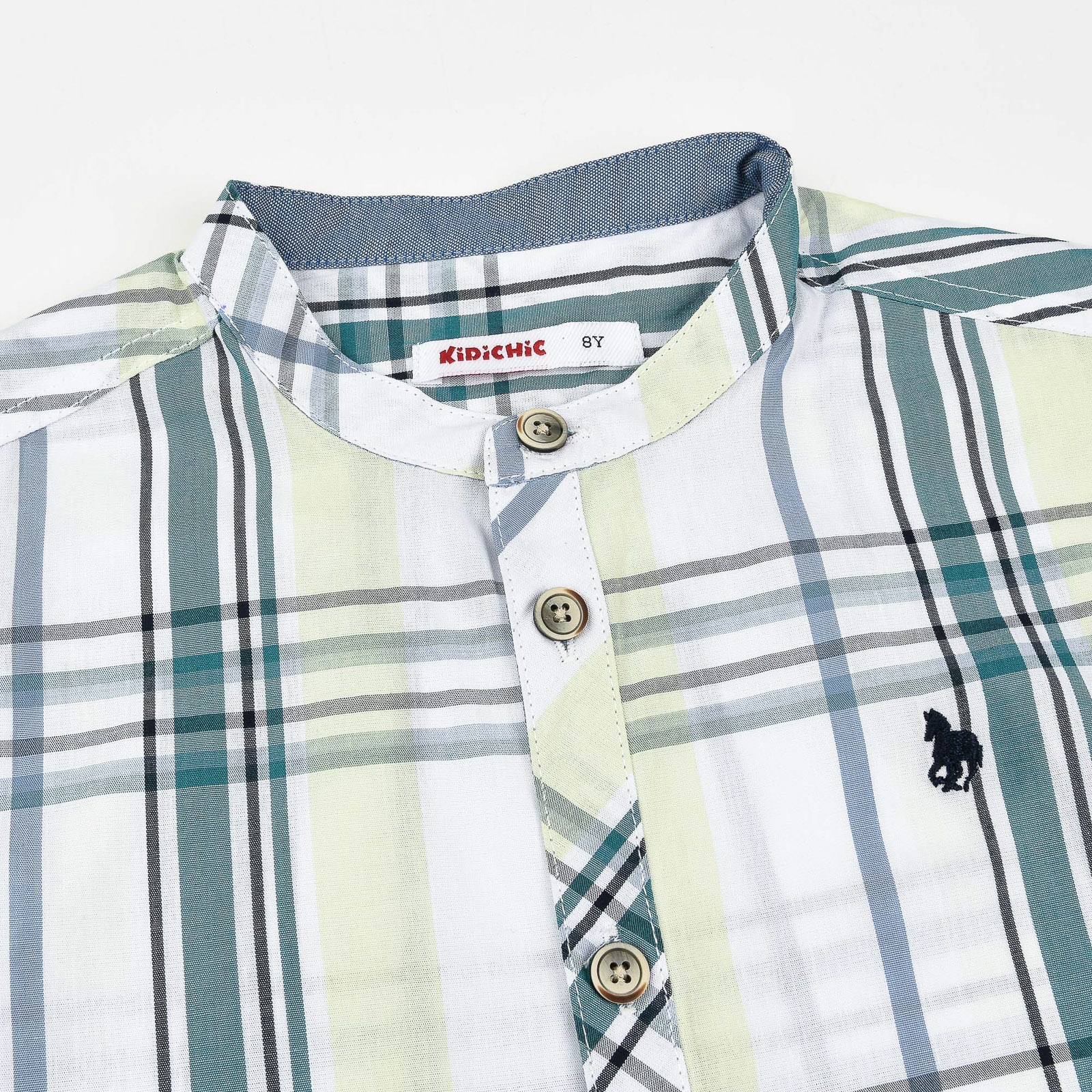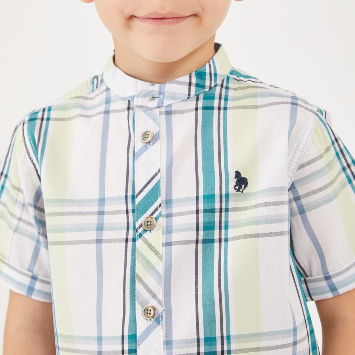 חולצת משבצות צווארון סיני קצר