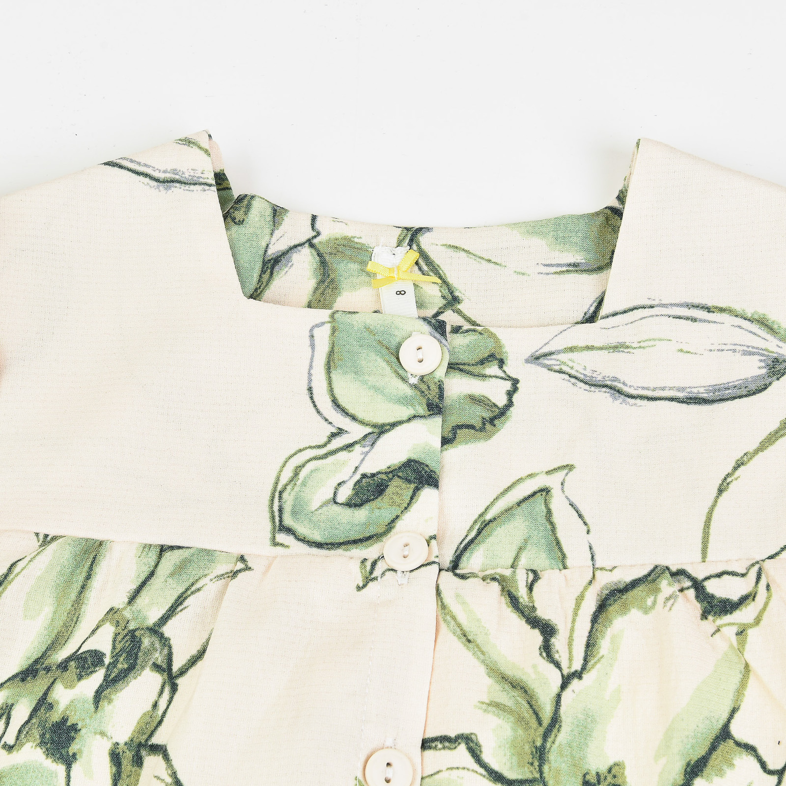 גיהוץ בחום נמוך, אין לגהץ הדפסים ורקמות.